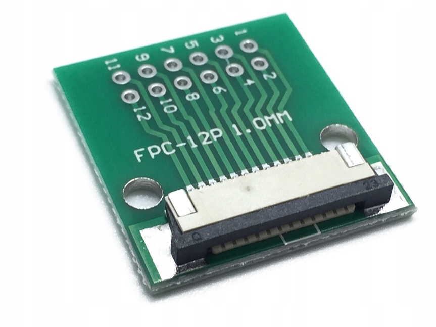Адаптер, который позволяет подключить FPC/FFC 12-контактный (1,0 мм растрового) к стандартной печатной плате. Идеально подходит для проектов DIY, ремонта и прототипирования.