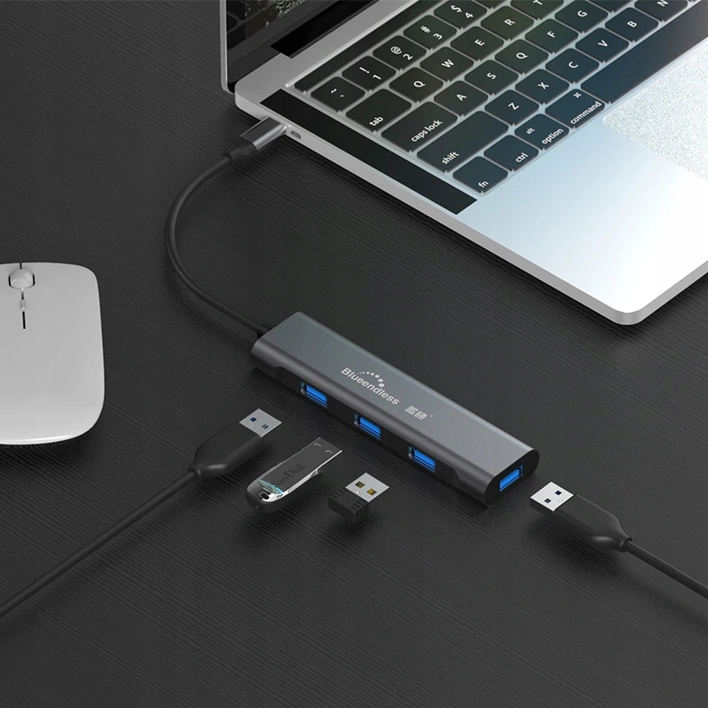 Элегантный ХАБ с USB-разъемом и четыре разъема USB 3.0. Фантастический гаджет, который расширит возможности вашего ноутбука или смартфона (для подключения HUB к телефону необходим OTG-переходник) совершенно новыми функциями. Он позволит вам, среди прочего, подключать флэш-накопители, мышь, клавиатуру или внешние накопители, а также заряжать оборудование на быстрой скорости и использовать проектор или экран телевизора. Идеально подходит для людей, у которых все порты на компьютере заняты.