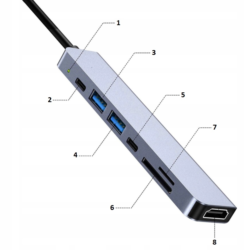 Многофункциональный адаптер 7в1 — решение всех проблем, связанных с отсутствием соответствующих розеток или приобретением одиночных переходников под различные разъемы . Элегантный и компактный HUB оснащен 7самыми популярными разъемами, которые можно использовать все одновременно, что позволяет значительно улучшить вашу работу. Адаптер работает сразу после подключения и не требует установки дополнительных драйверов. Он также позволяет вам заряжать ваше устройство (например, телефон), используя другие порты. Небольшой размер адаптера означает, что вы можете подключить его везде там, где он вам нужен — к компьютеру, планшету или смартфону в офисе, на работе или дома. p>