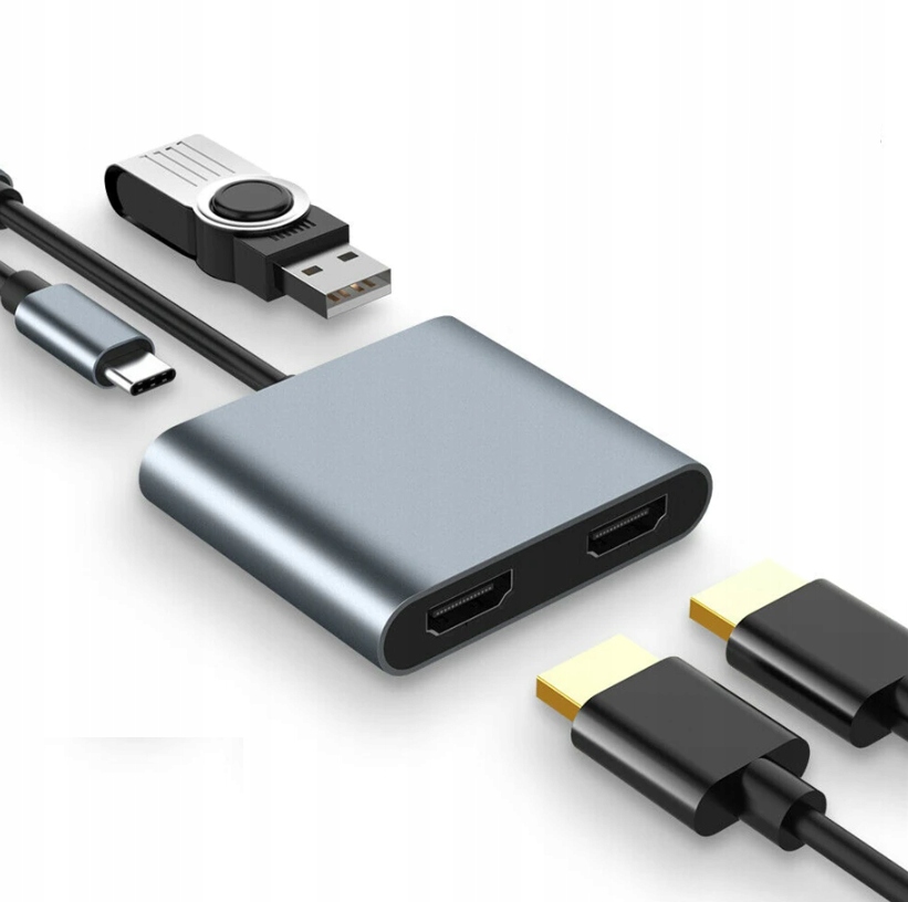 АДАПТЕР ХАБ USB-C 3.1 4IN1 2x HDMI 4K USB 3.0 Power Delivery PD адаптер
