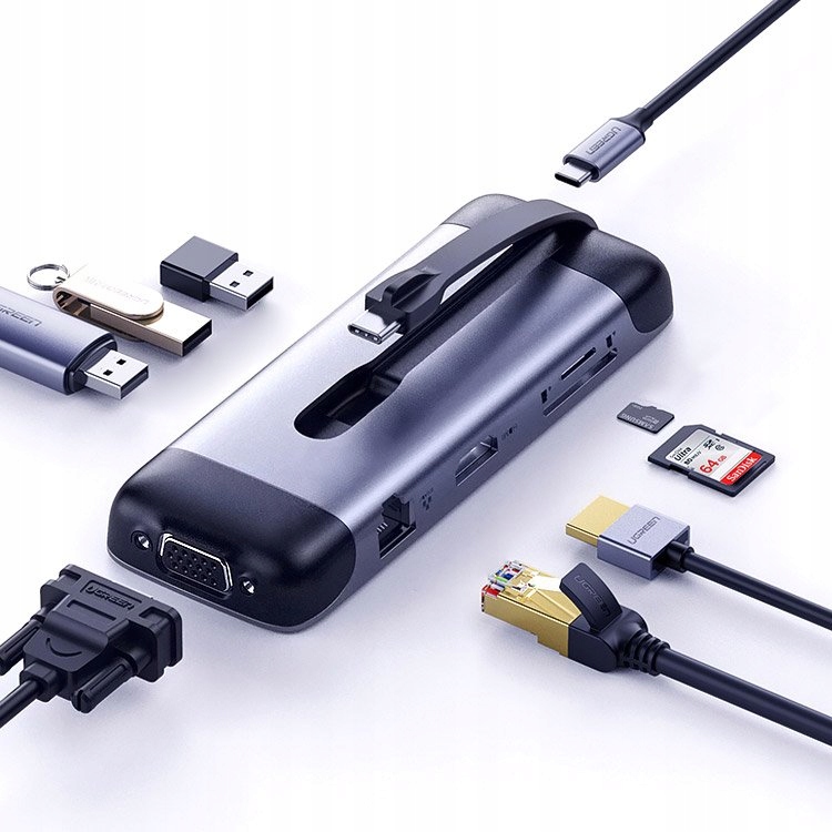 Ugreen USB-C 9W1 Адаптер-это компактный многофункциональный центр, который значительно расширит возможности вашего устройства. Этот концентратор, разработанный для пользователей ноутбуков, планшетов и смартфонов, позволяет подключать до 9 различных портов, таких как HDMI, VGA, RJ45, USB 3.2, а также считыватели карт SD и MicroSD. Благодаря этому адаптеру вы можете насладиться быстрой передачей данных, высоким качеством изображения и надежным интернет -соединением. Подключите различные устройства и аксессуары одновременно, что обеспечивает комфорт работы и развлечения без ограничений. Порты USB 3.2 Gen 1 предлагают передачу скорости до 5 Гбит/с, что позволяет быстро отправлять большие файлы. Дополнительный порт VGA поддерживает полное разрешение HD (1920x1080p), благодаря тому, что у вас есть гибкость при подключении устройств более старого типа. Построен -в Ethernet. Сплошные материалы, такие как алюминий и прочный ABS, Hub Ugreen - это легкий (весит около 150 г) и легко переносить. Каждый порт управляется отдельным чипом, который обеспечивает плавную работу независимо от количества подключенных устройств. С ним работа становится быстрее и эффективнее, а также развлечено - полнее. Подключите, зарядите и отправьте с максимальным комфортом!