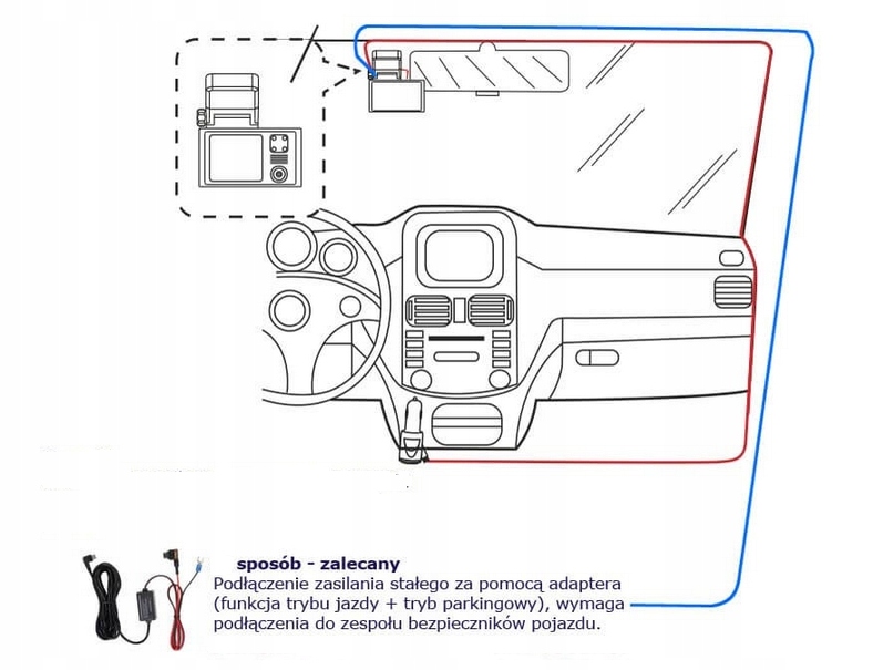 Подключение регистратора движения к блоку предохранителей с помощью адаптера позволяет Регистратор должен постоянно питаться от автомобильного аккумулятора, независимо от того, включен или выключен автомобиль. Благодаря этому решению вы можете использовать расширенные функции видеорегистратора, такие как режим парковки.