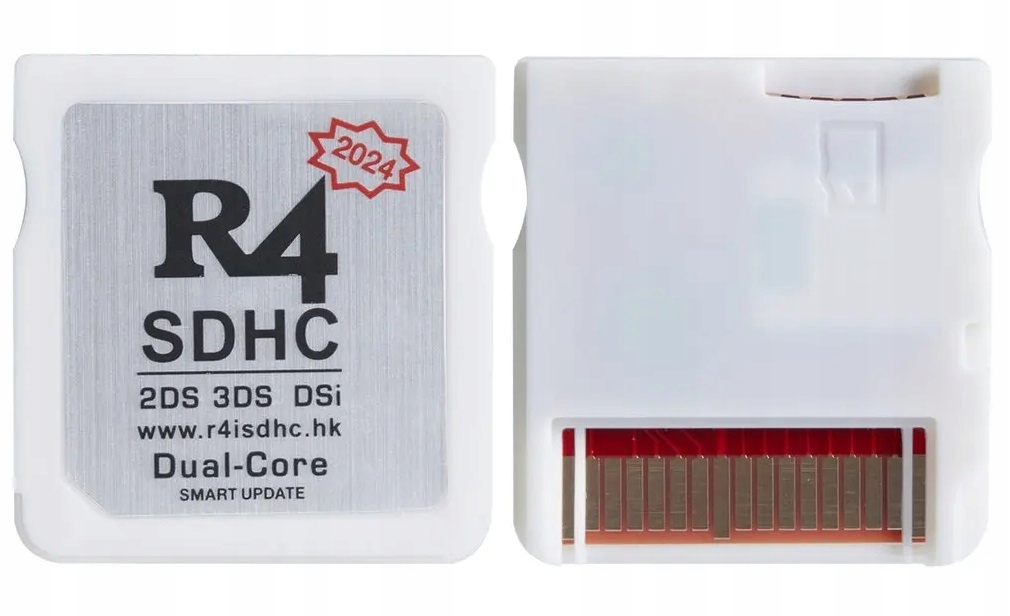 Двухъядерная карта R4 SDHC Это картридж (картридж), который выглядит как классическая игра Nintendo DS, но оснащен устройством чтения microSD. В сочетании с соответствующим программным обеспечением он позволяет: