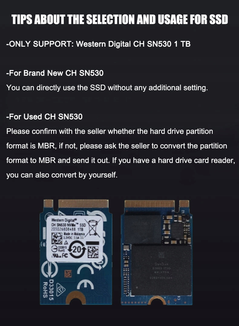 Примечание: твердотельный накопитель CH SN530 не входит в комплект