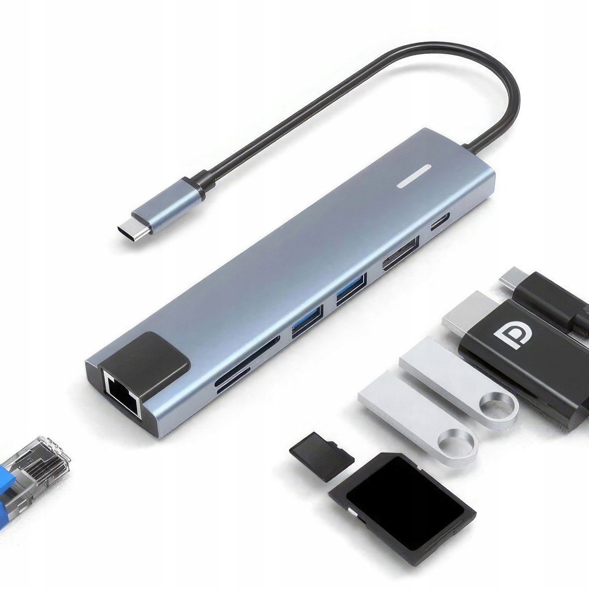 АДАПТЕР-КОНЦЕНТРАТОР СПЛІТТЕР USB C LAN DISPLAY PORT 8K
