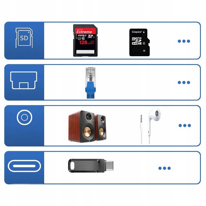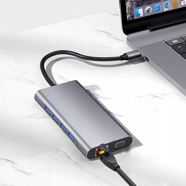 Адаптер/концентратор с HDMI, VGA (D-SUB), LAN, USB, USB-C PD, SD, MicroSD, AUX