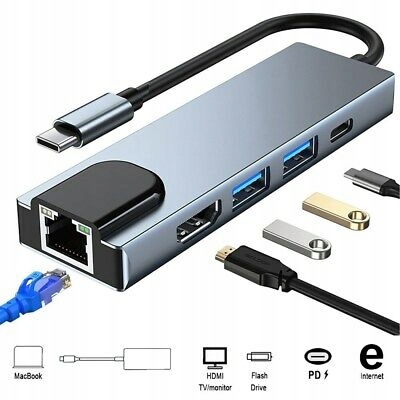 Современный и элегантный адаптер-концентратор 2 x USB 3.0 + HDMI 4K, порт Ethernet RJ45 LAN 10/100/100BASE-T