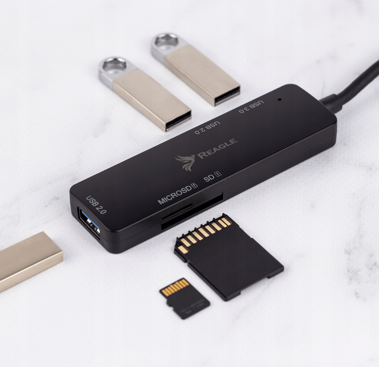Reagle RHUB52C — это активный концентратор UBS-C с устройствами чтения карт SD и micro SD.
