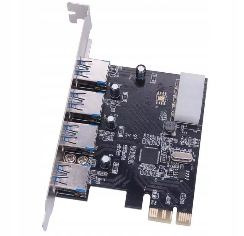 Контроллер PCI-E от 1 до 4 портов USB 3.0. Адаптер позволяет подключить дополнительные 4 порта USB 3.0 к слоту PCI-E на материнской плате, что является идеальным решением, когда на настольном компьютере нет свободных портов USB. Проверьте, есть ли на материнской плате вашего компьютера свободный порт PCI-E, затем установите контроллер в свободный отсек корпуса компьютера, вставьте его в порт PCI-E на материнской плате и подключите блок питания через стандартный разъем MOLEX и все. . Четыре дополнительных порта позволяют подключать к компьютеру больше устройств, а благодаря пропускной способности USB 3.0 скорость передачи увеличивается до 10 раз по сравнению с предыдущими решениями, что позволяет значительно быстрее копировать или создавать резервные копии ценных личных и деловых данных. Подключите USB-устройства, такие как принтер, сканер, камера или внешний жесткий диск.