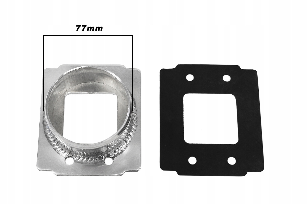 Адаптер, позволяющий подключить всасывающую трубу диаметром 77 мм к расходомеру. Изготовлен из алюминия, резиновая прокладка в комплекте