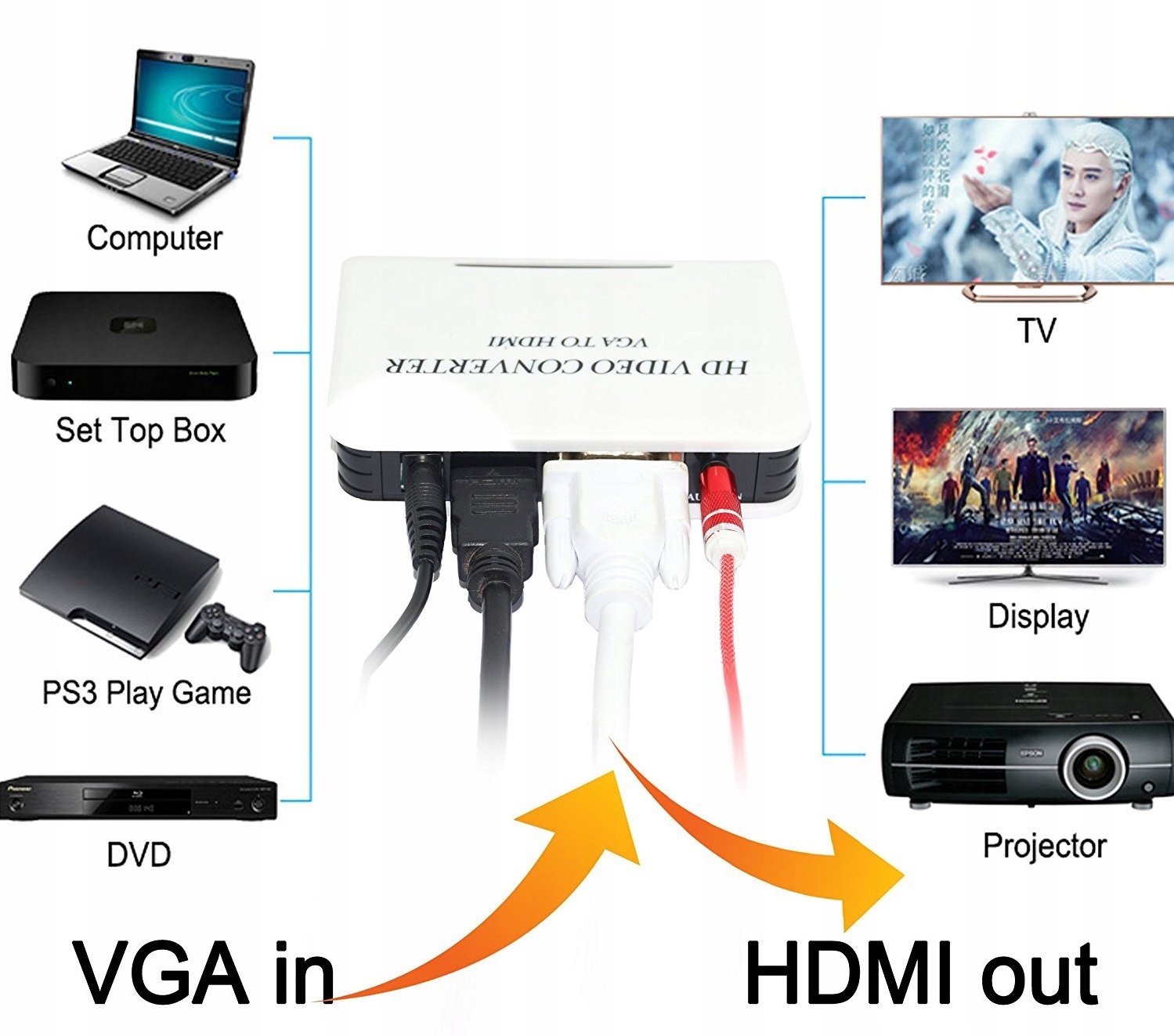 ПРИМЕЧАНИЕ. Представленный продукт-это аналого-цифровой конвертер, который работает, в отличие от кабелей VGA-HDMI. Обычный кабель не будет работать - устройства, которые также будут иметь цифровой сигнал в разъеме VGA, неслыханные