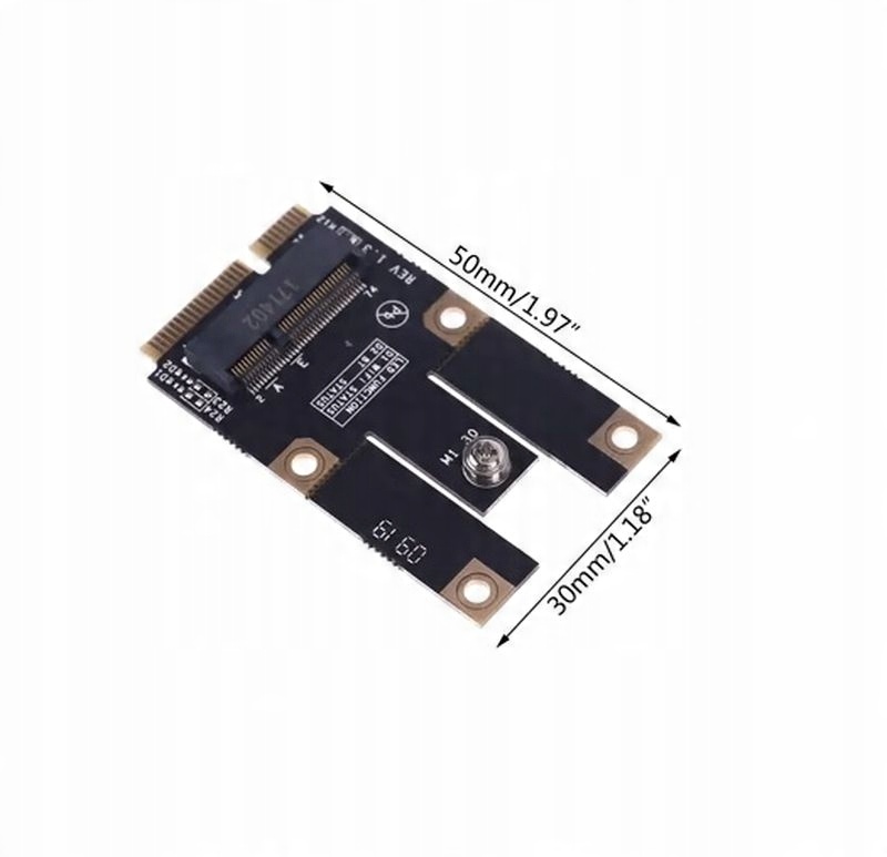 Адаптер позволяет подключить сетевую карту M.2 NGFF Key A или Key A + E к ноутбуку/ноутбуку/настольному компьютеру со свободным портом Mini PCI-e. Поддерживает формат M.2 NGFF: 2230. Возможность отломить часть адаптера для лучшей подгонки. Plug&Play – драйверы не требуются. Работает с любой системой. Размеры: 50x30 мм.