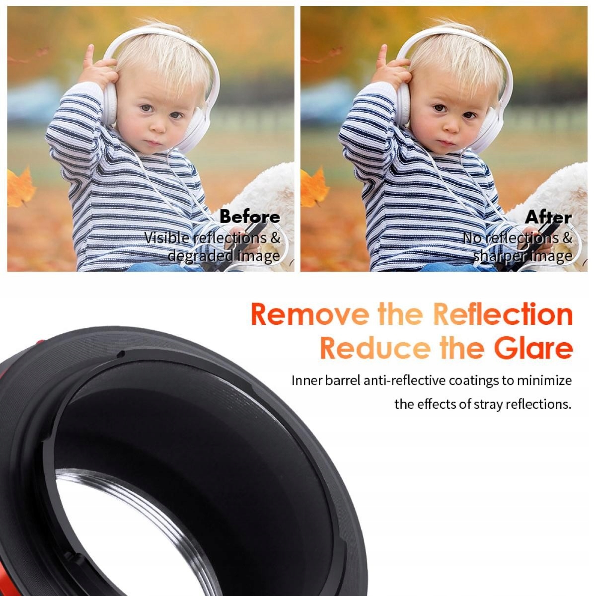 Micro 4: 3 и со всеми объективами M42 Micro 4: 3 и со всеми объективами M42 Micro 4: 3 и со всеми объективами M42 Micro 4: 3 и всем- Адаптерный агент имеет специально окрашенное покрытие, которое минимизирует риск отражателей и размышлений. Что влияет на контраст полученного фото и резкости. Это проиллюстрировано выше. Таким образом, нет никакого страха, что мы повредим в камере или камере.