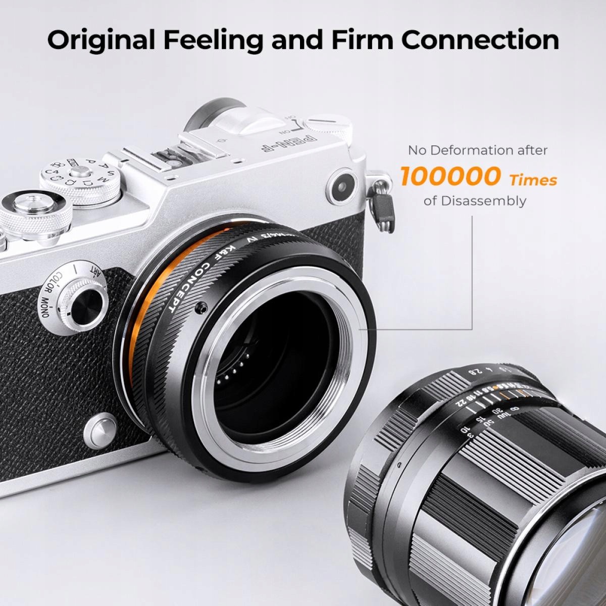 благодаря кольцу блокады, которое можно удалить, если это необходимо, это самый универсальный адаптер M42-M43