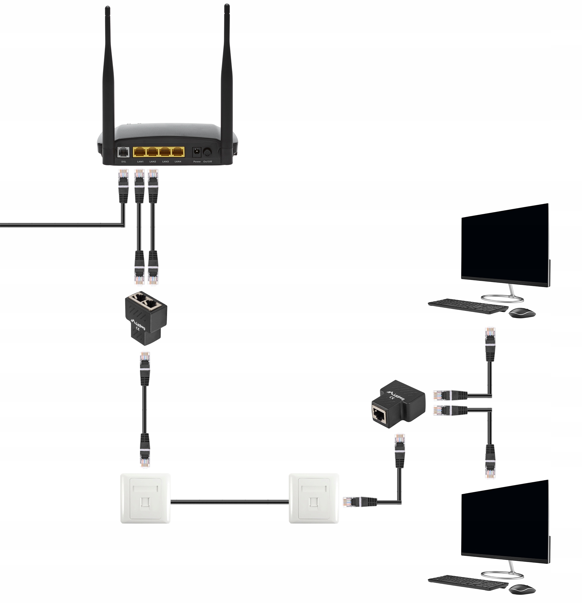 АДАПТЕР МЕРЕЖЕВИЙ КОНЕКТОР RJ45->2X RJ45 ЕКРАН LANBERG