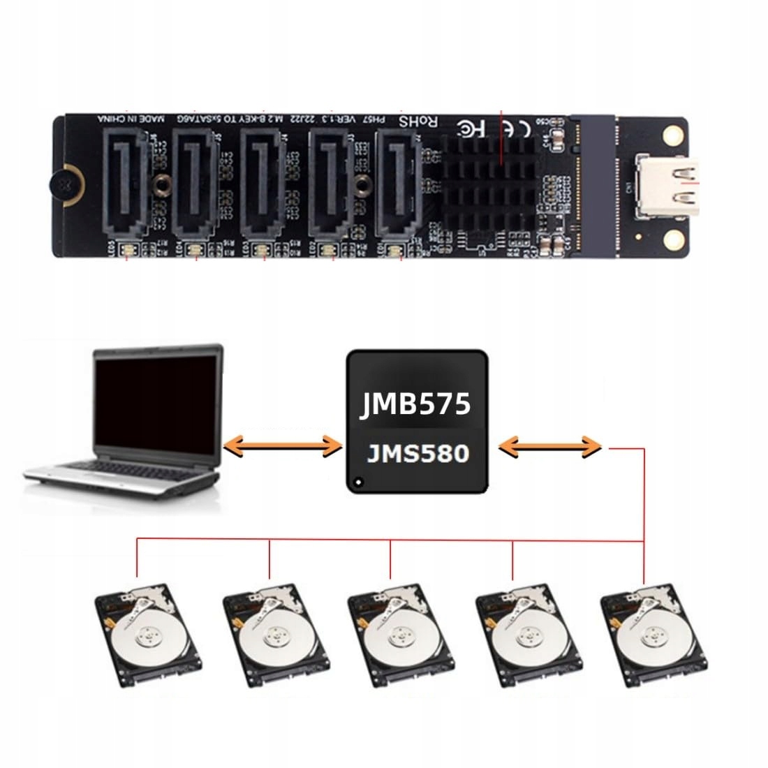 - Чип управления: JMB575 + JMS580