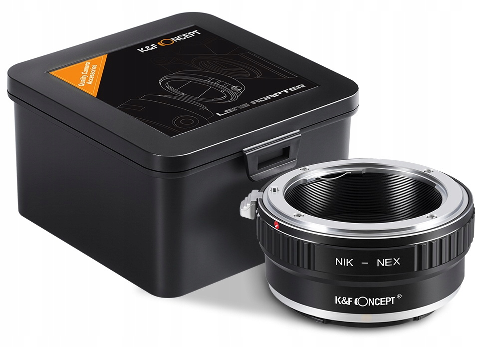 Объект продажи-адаптер Nikon (объектив) на Sony E-ittent (тело). Концепт -адаптеры K & F являются наиболее тщательно сделанными адаптерами для фотографов. Они допускают невыполненное сотрудничество с каждым объективом с Nikon AF / AI / AIS