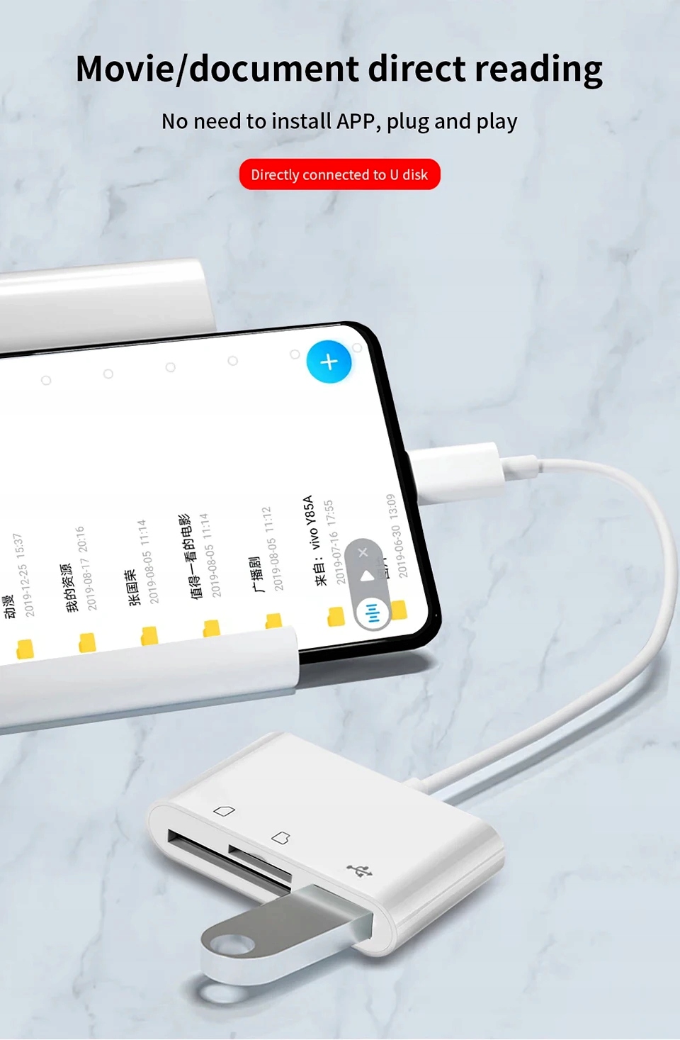 Обсудив с адаптером, нам не придется беспокоиться об объеме свободной памяти в телефоне (планшете, смартфоне), поскольку в любой момент мы можем подключите внешний, дополнительный носитель информации и скопируйте фотографии и важные файлы на смартфон, освободив таким образом место для скачивания или создания новых файлов, сувенирных фотографий.