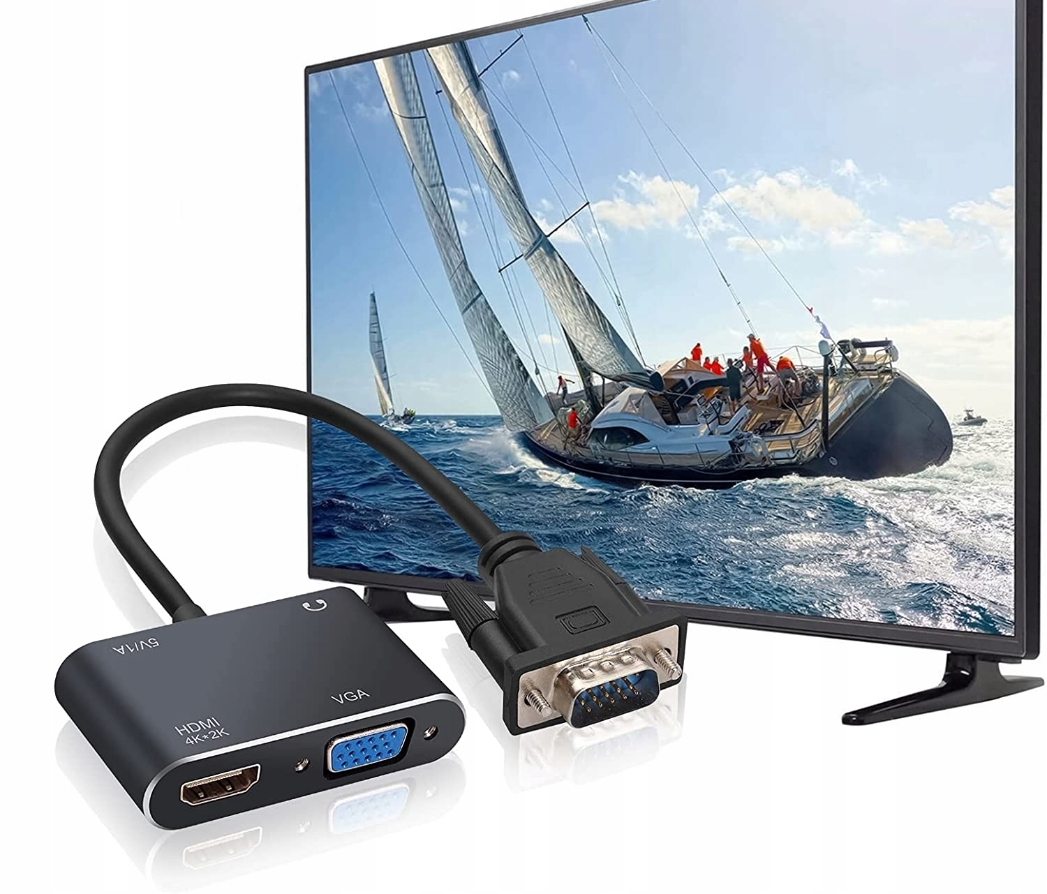 Позволяет подключать компьютер/ноутбук и другие устройства, оснащенные разъемом VGA, к монитору, проектору или телевизору, оснащенному разъемом HDMI.