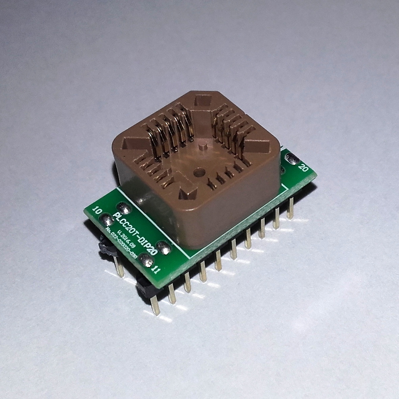 Адаптер для перевода систем в корпусах PLCC20(THT) на гнездо DIP20 с расстоянием 0,3 дюйма.