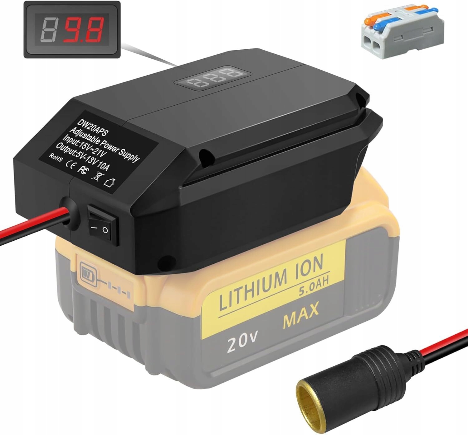 - 【Понижающий преобразователь】: Входное напряжение: 18–20 В постоянного тока; Выходное напряжение: 12 В постоянного тока, 5-13 В постоянного тока; Выходной ток: макс. 10 А; Эффективность: ≥ 95%. Идеально подходит для понижающего преобразователя с 20 В на 12 В, обеспечивает полную совместимость и стабильную работу при питании различных автомобильных устройств. Этот универсальный адаптер позволяет эффективно использовать батарею Dewalt в различных целях, повышая удобство активного отдыха и работы в автомобиле.