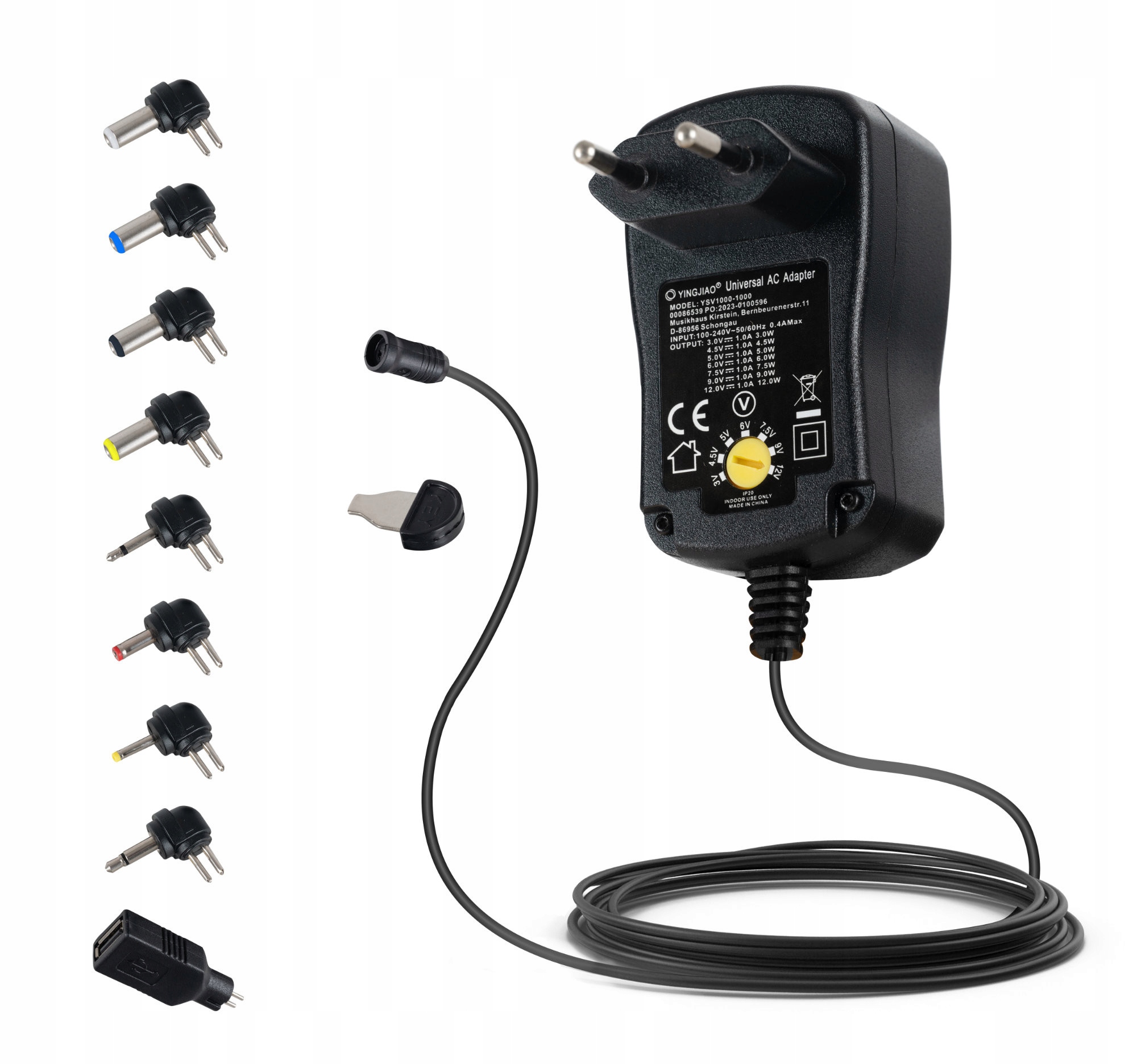 Этот адаптер можно использовать с широким спектром электронных устройств благодаря большому количеству дополнительных напряжений, разъемов и полярностей.