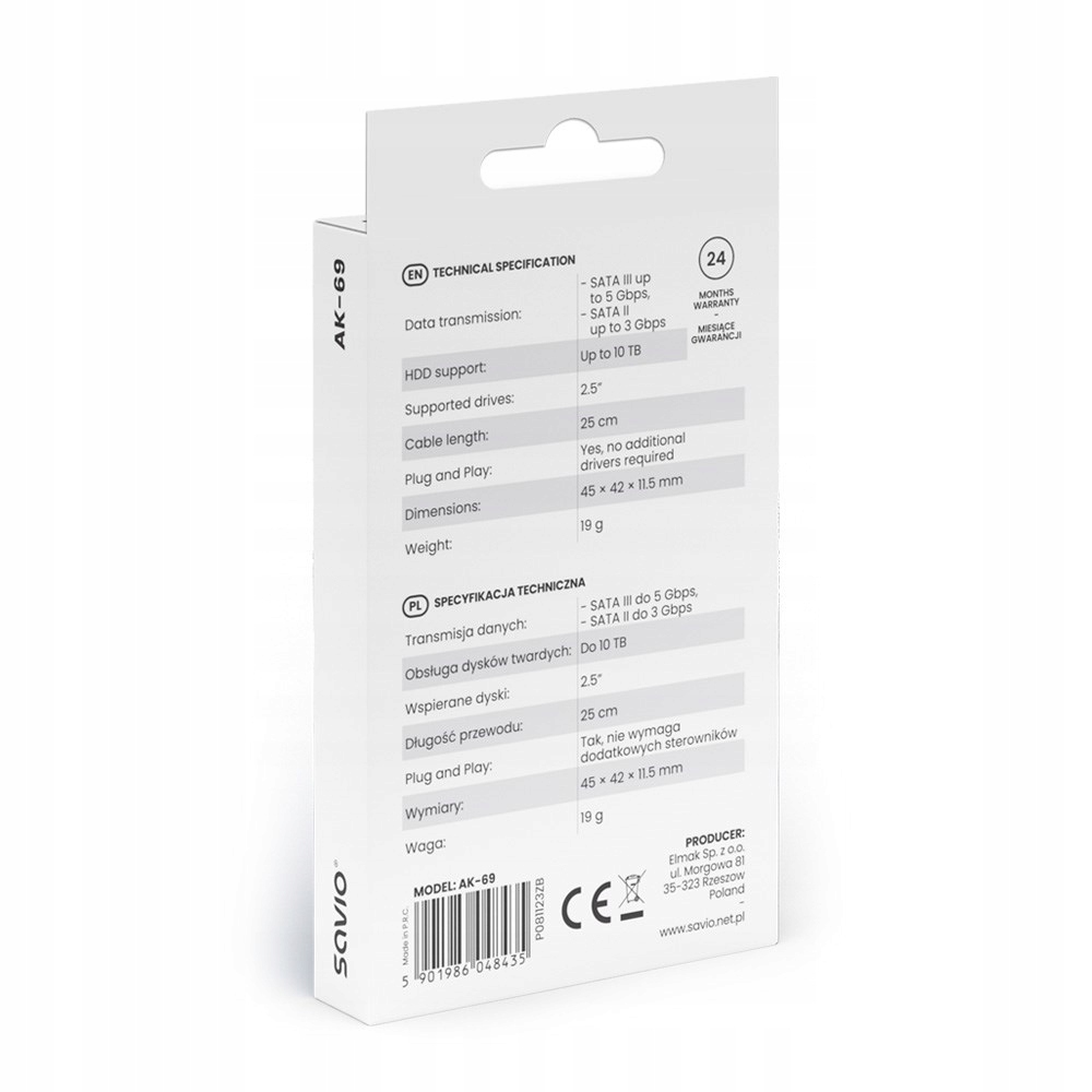 АДАПТЕР SAVIO USB-C 3.1 GEN 1 (M) - SATA (F) ДЛЯ 2,5-ДЮЙМОВЫХ НАКОПИТЕЛЕЙ AK-69