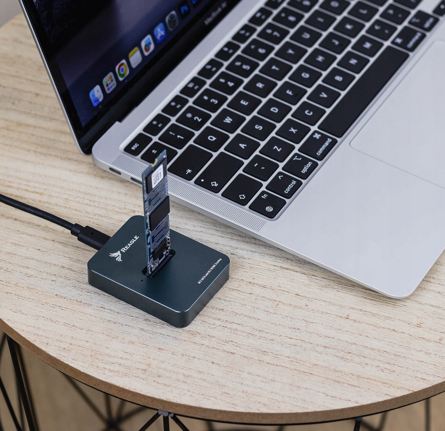 Модель RY6M2 от Reagle — идеальный выбор, если у вас есть несколько накопителей M.2 и вы не хотите покупать для них корпуса. Адаптер поддерживает диски размером 2230/2242/2260/2280 и максимальной емкостью 2 ТБ. Его можно использовать в качестве док-станции для дисков M.2 NVMe с ключом M и B+M, а также дисков M.2 SATA с ключом B+M. Благодаря этому устройству вы можете создавать резервные копии файлов и безопасно их хранить, а также просматривать видео и фотографии прямо с внешнего носителя.
