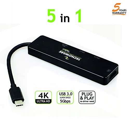 - Дисплей высокого разрешения: встроенный порт HDMI 4K Tecnoware Hub позволяет отображать впечатляющие изображения Ultra HD 4K при 30 Гц и Full HD 1080P при 60 Гц. Идеально подходит для презентаций, видео или расширенных рабочих поверхностей на больших экранах.