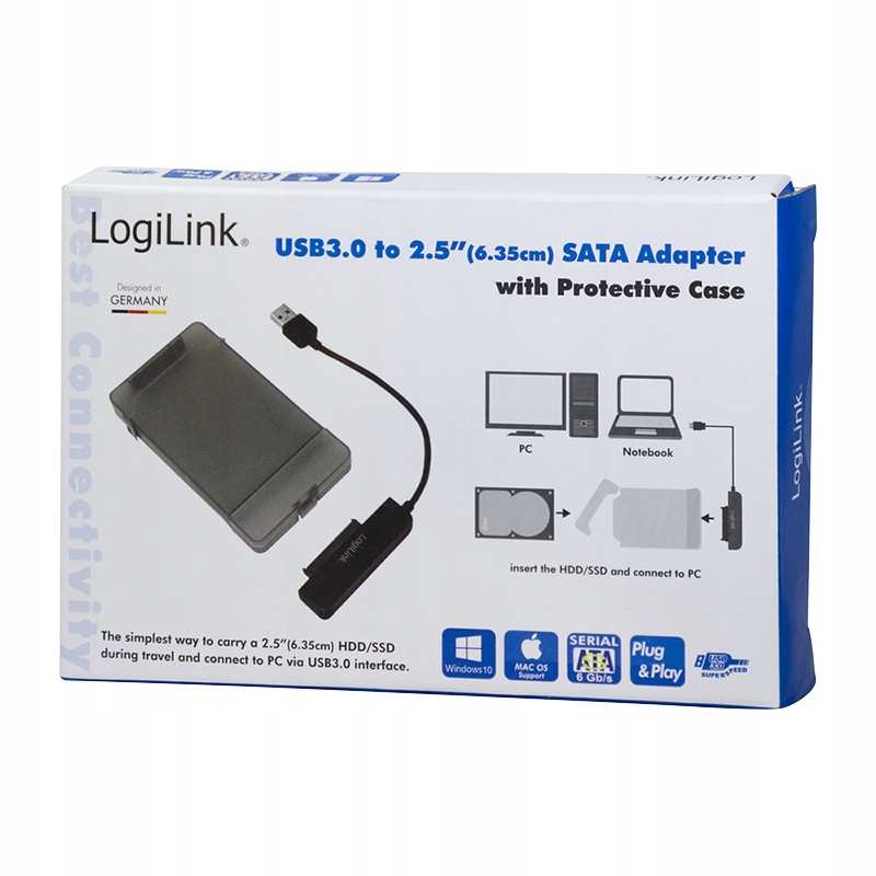 Адаптер SATA USB 3.0 на 2,5 дюйма в защитном чехле — это надежное и универсальное решение для всех, кому необходим быстрый и безопасный доступ к своим данным. Благодаря прочной конструкции и совместимости со многими системами, он является идеальным инструментом для работая как в офисе, так и в путешествии. Выбирайте адаптер LogiLink и наслаждайтесь бесперебойной передачей данных и безопасностью вашего оборудования!