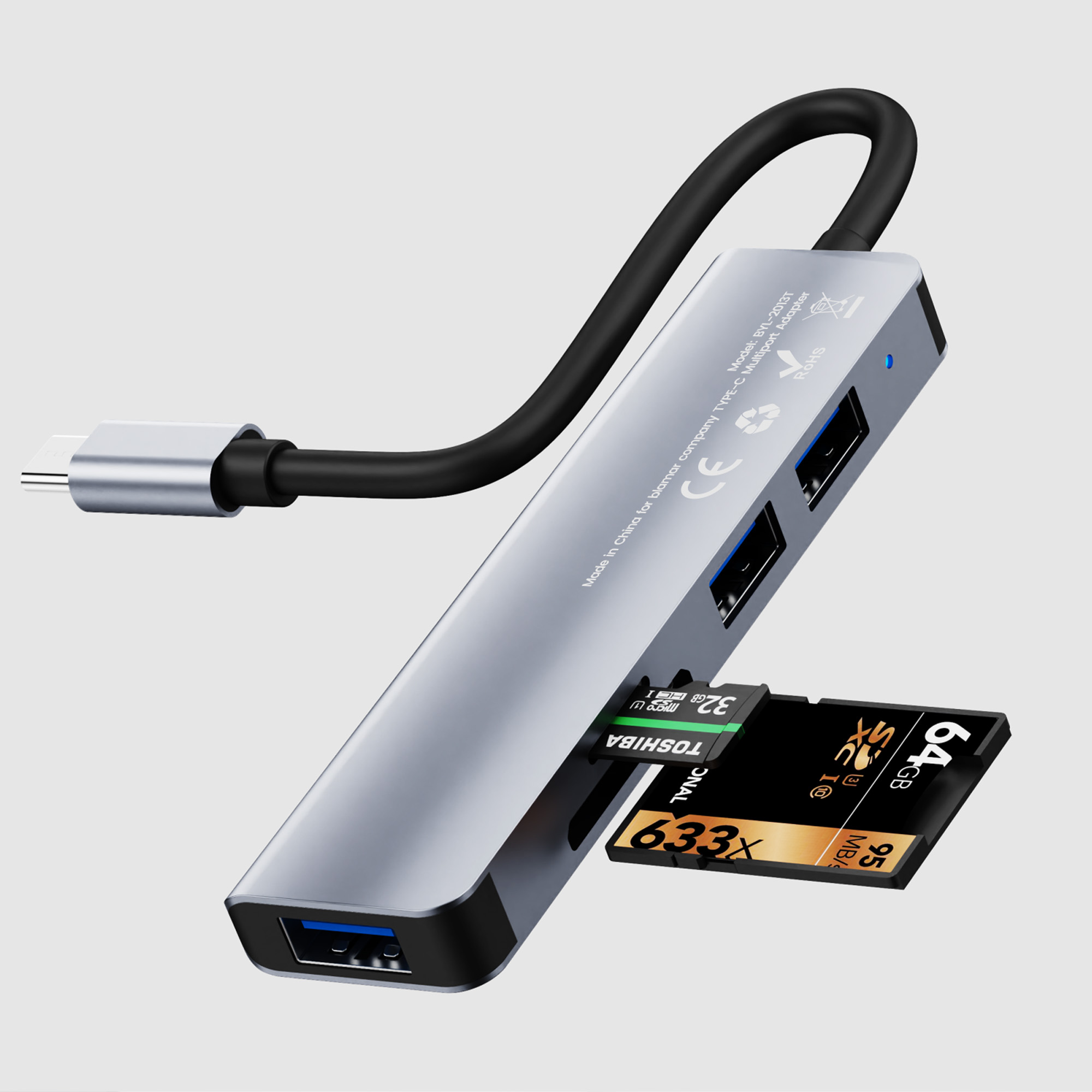 АДАПТЕР USB-C HUB 5in1 - 3xUSB + SD / TF READER