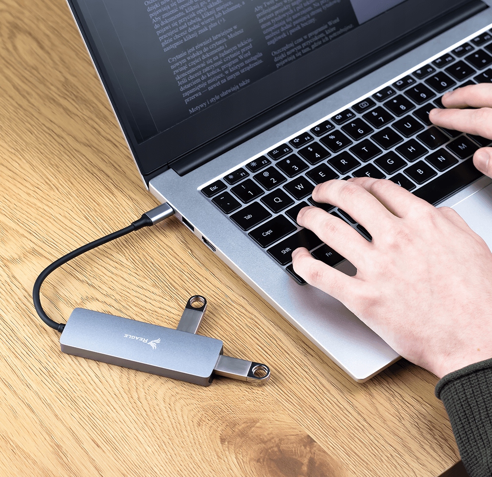 Продукция Reagle отличается отличным качеством изготовления. Корпус изготовлен из алюминия, который защищает хаб от механических повреждений и поддерживает соответствующую рабочую температуру устройства. Вам не нужно использовать дополнительное питание, поскольку концентратор активен.