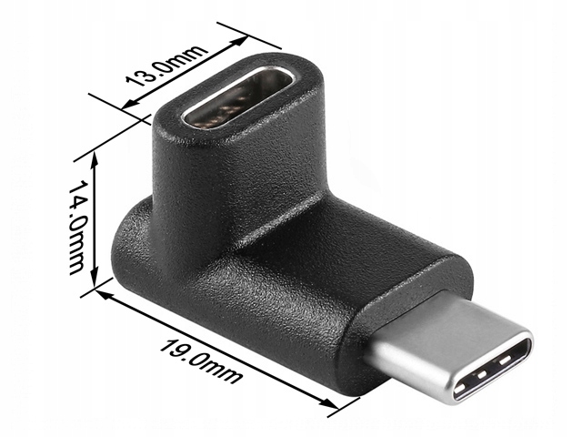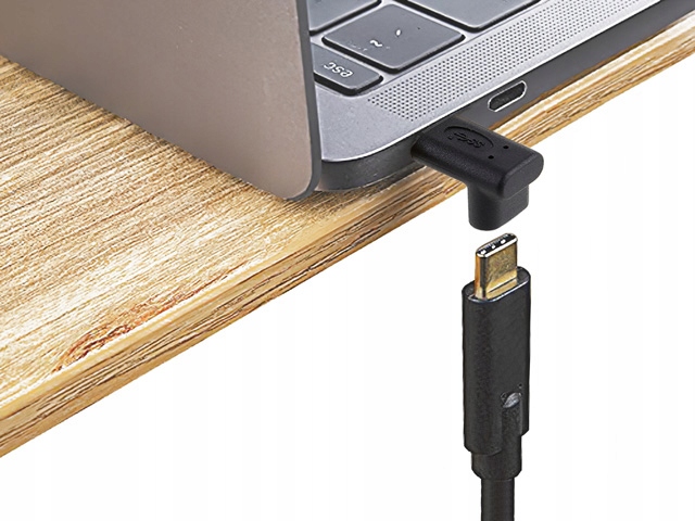 Предлагаемый адаптер меняет способ подключения разъема USB-C C — благодаря этому мы можем более удобно прокладывать кабель. Самый распространенный кабель имеет прямую вилку, поэтому кабель располагается перпендикулярно устройству. Предлагаемый нами адаптер позволяет прокладывать кабель параллельно краю устройства, что может быть полезно в некоторых ситуациях, например, когда устройства подвешиваются или прижимаются к стене.