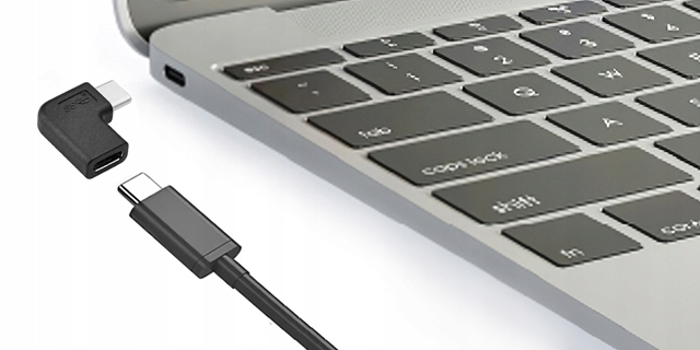 Предлагаемый адаптер меняет способ подключения разъема USB-C C — благодаря этому мы можем более удобно прокладывать кабель. Самый распространенный кабель имеет прямую вилку, поэтому кабель располагается перпендикулярно устройству. Предлагаемый нами адаптер позволяет прокладывать кабель параллельно краю устройства, что может быть полезно в некоторых ситуациях, например, когда устройства подвешены или придвинуты к стене.