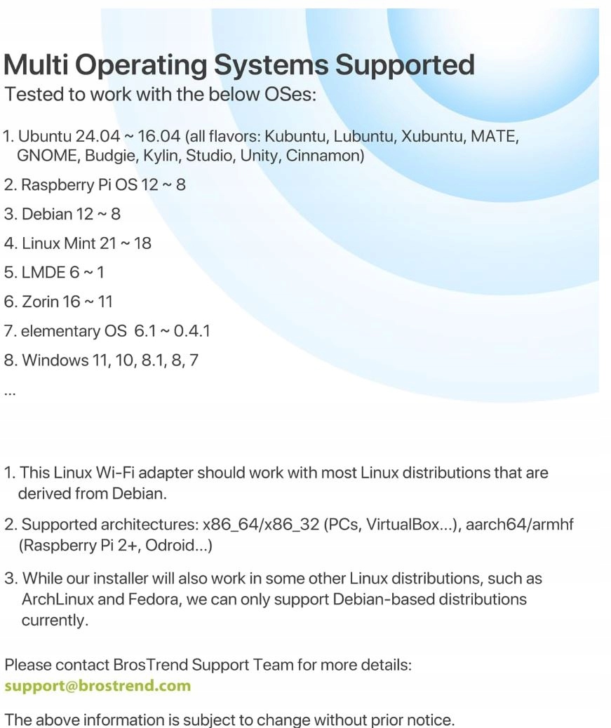 Этот wifi -адаптер работает с системами Linux, такими как Ubuntu (21.04/20.04/19.10/19.04/18.04/16.04), Debian 9 (streting), Mint, Raspbian, Kali (с яичками к версии 5.11), а также с Windows (10/8.1 /8/7/xp) и macos (10.9-10.15) ! Благодаря этому вы можете использовать его на различных устройствах, не беспокоясь о совместимости. 🔄💻