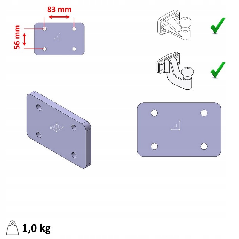 Адаптер увеличивающий расстояние на 12 мм Шарик фаркопа 83х56 для Nissan NV 200 10-
