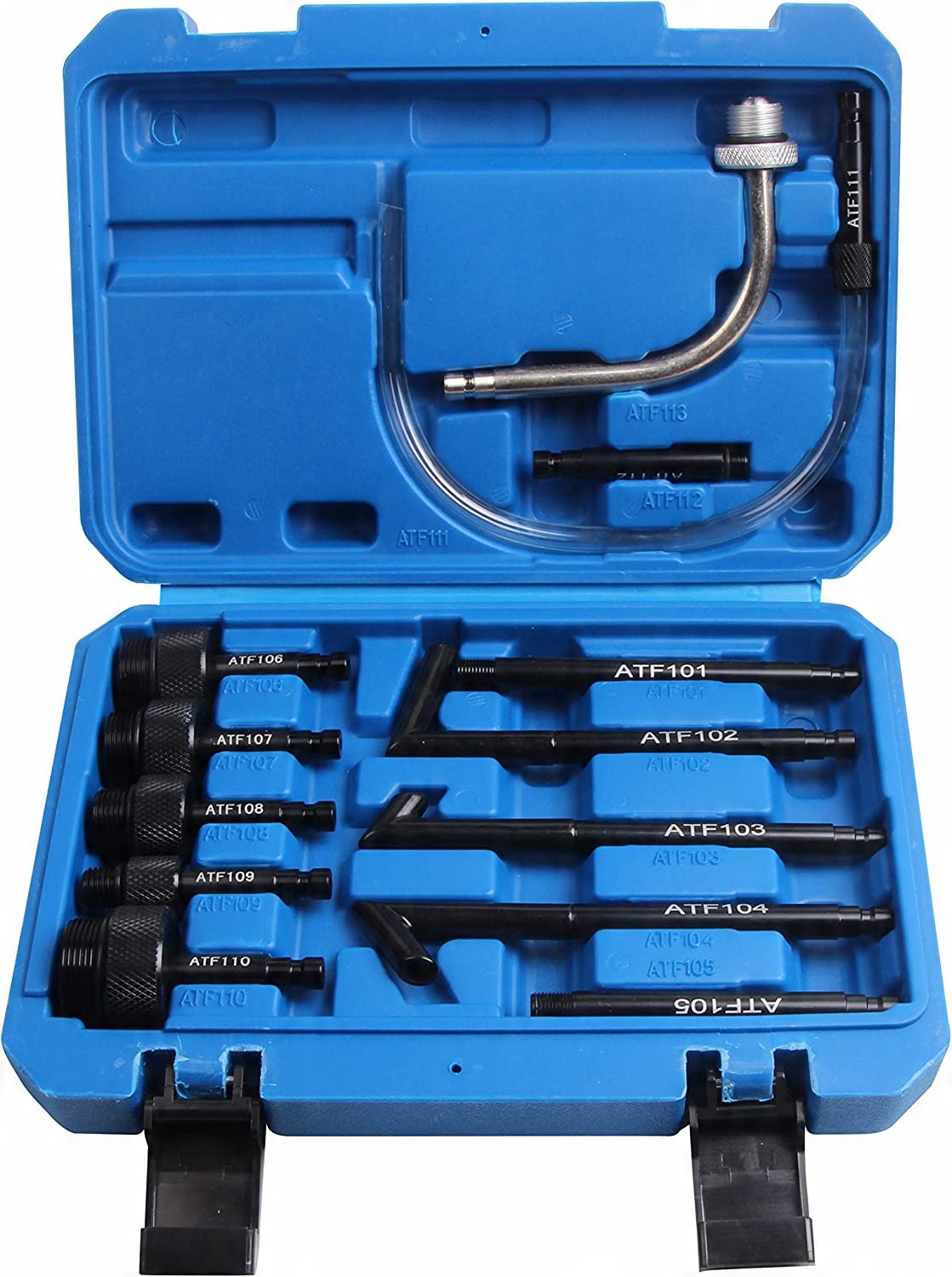 Комплект специализированных адаптеров для замены и долива масла в автоматических коробках передач. В комплект входят 13 адаптеров, обеспечивающих работу коробок передач наиболее популярных марок легковых автомобилей.