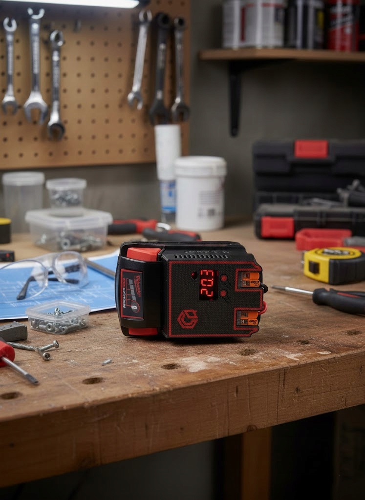 Современная электростанция позволяет использовать аккумуляторную батарею Milwaukee в качестве переносного источника энергии.