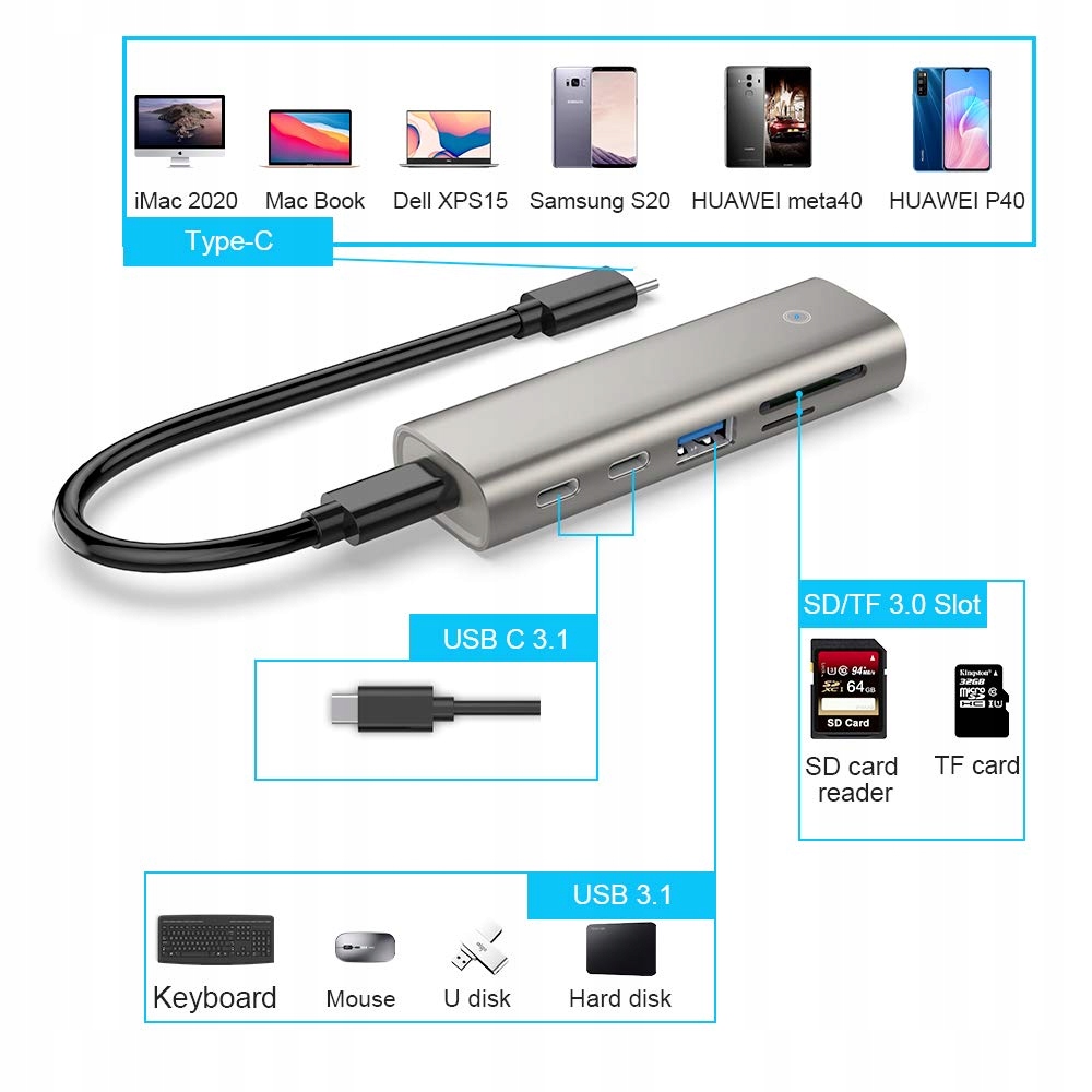 Адаптерна станція USB-C HUB USB-C 5в1 USB 3