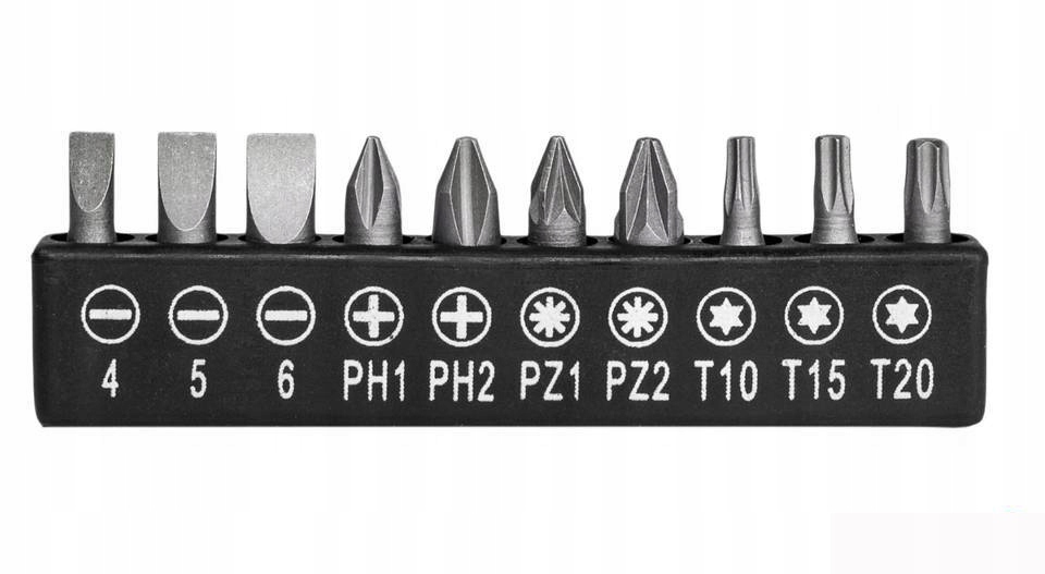 - Torx: T10, T15, T20
