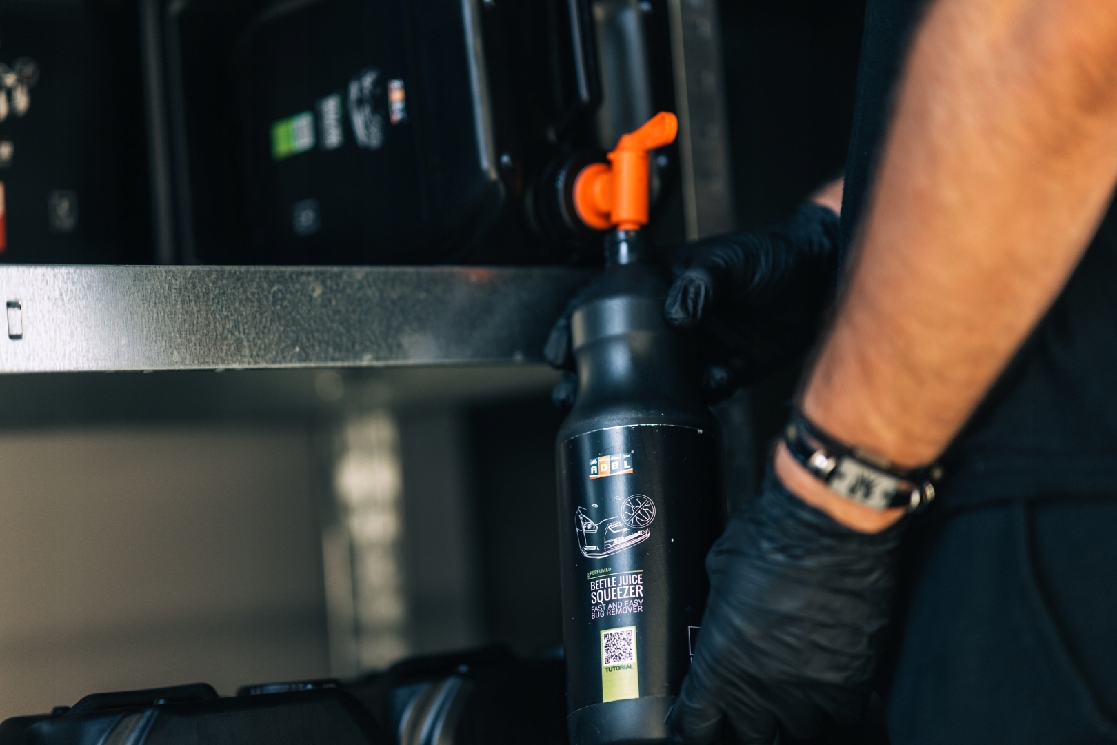 - Быстро действующая соковыжималка ADBL BEETLE JUICE SQUEEZER легко избавляется от насекомых, предотвращая обесцвечивание и образование ямок. Он также растворяет другие органические загрязнители, такие как древесный сок и птичий помет. Прекрасно справляется с маслом, жиром и дорожной грязью.