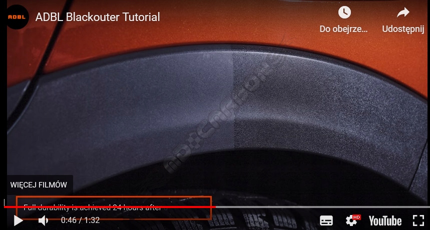 1. Равномерно распределите небольшое количество продукта с помощью ADBL Foamburger или ADBL One Shot Tire Pad на очищенный пластиковый внешний элемент.