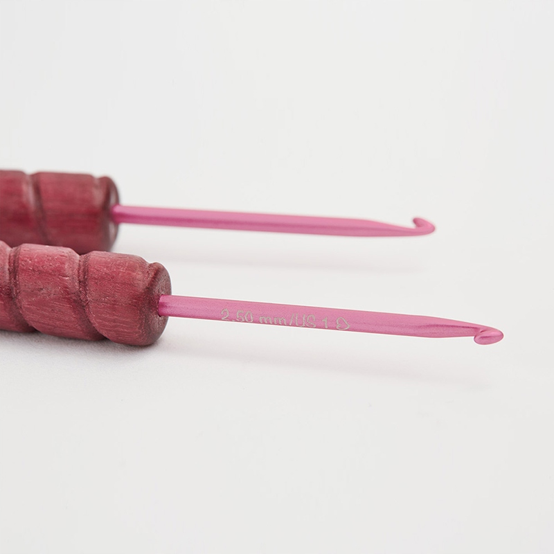 Crochet addi Unicorn PurpleHeart с алюминиевым подходом хорошо подходит в руке и обеспечит удобное время вязания крючком. Ручка, подобная руке, была сделана из твердого дерева Амаранта, окрашенной в темно -розовый и окрашенный. Сплошное вязание крючком подойдет как для начинающих, так и для поклонников вязания.