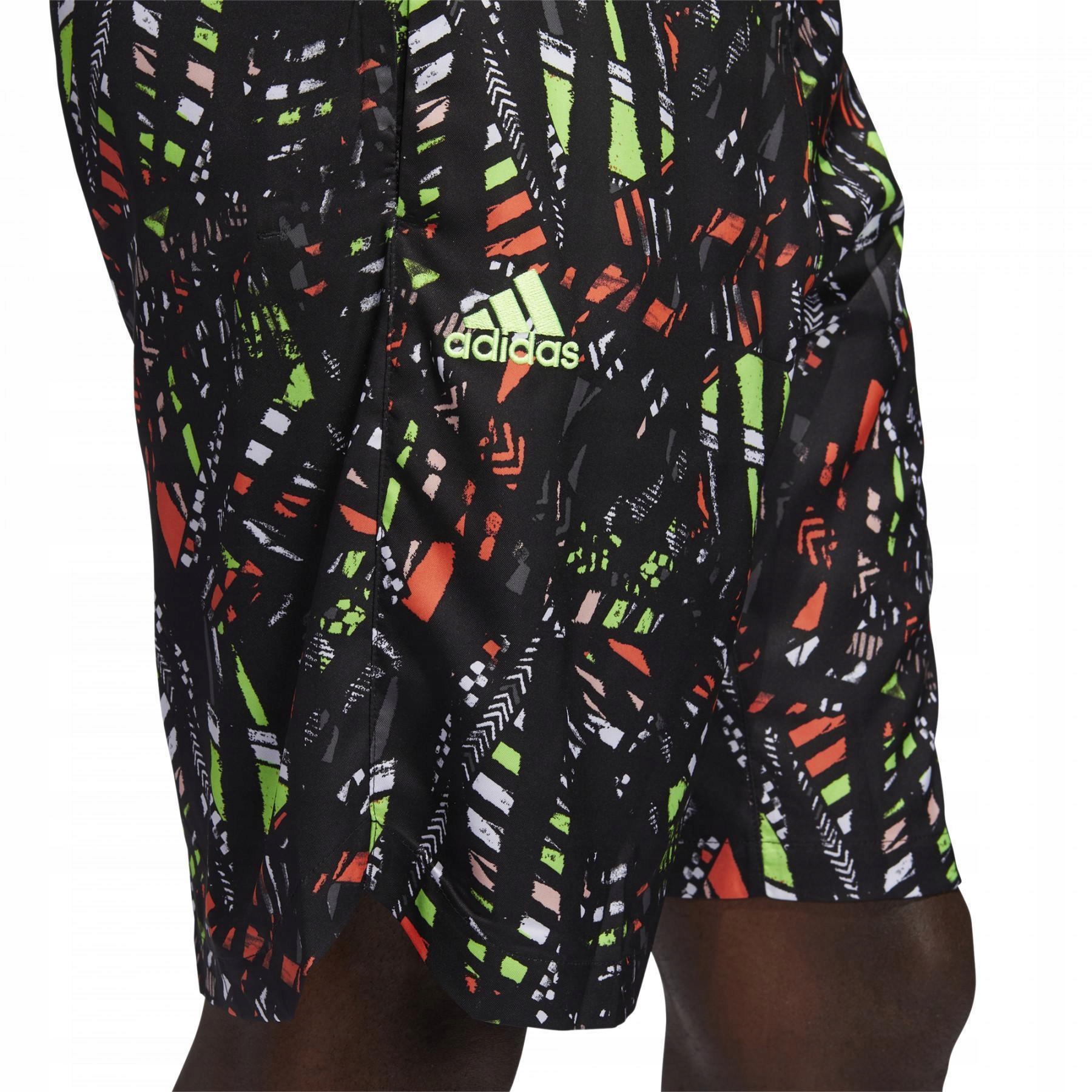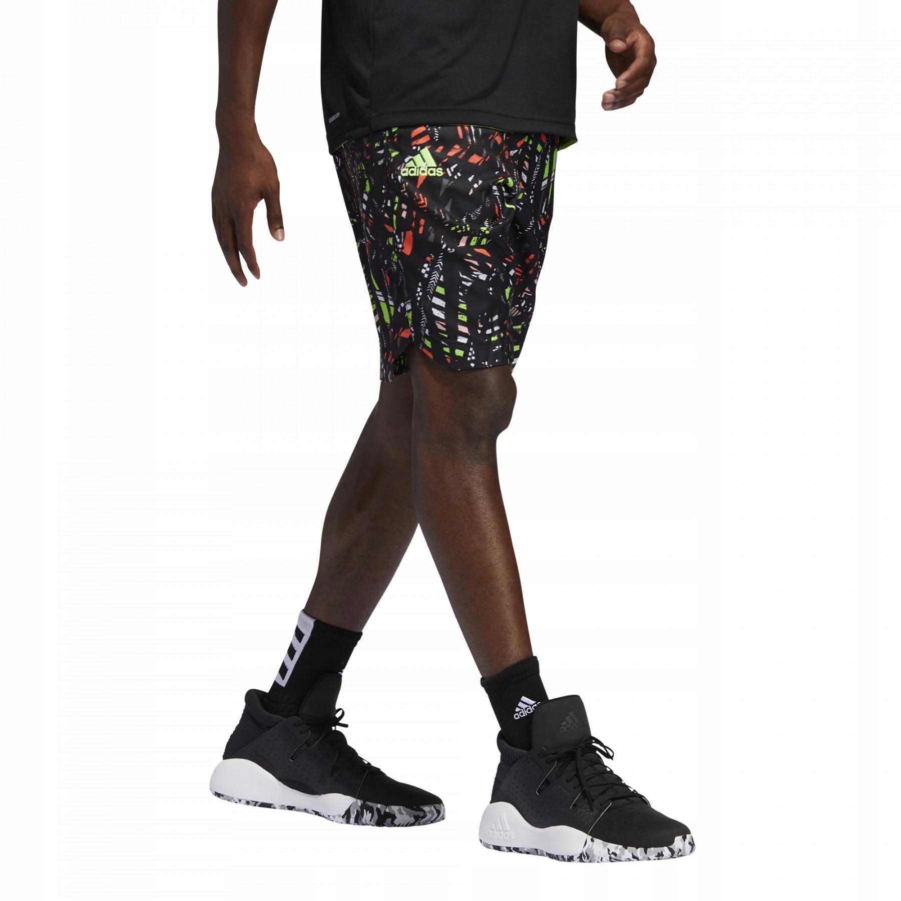 Эти баскетбольные шорты adidas украшены графикой по всей поверхности, вдохновленной путешествием бывшего MVP лиги. через юго-запад.