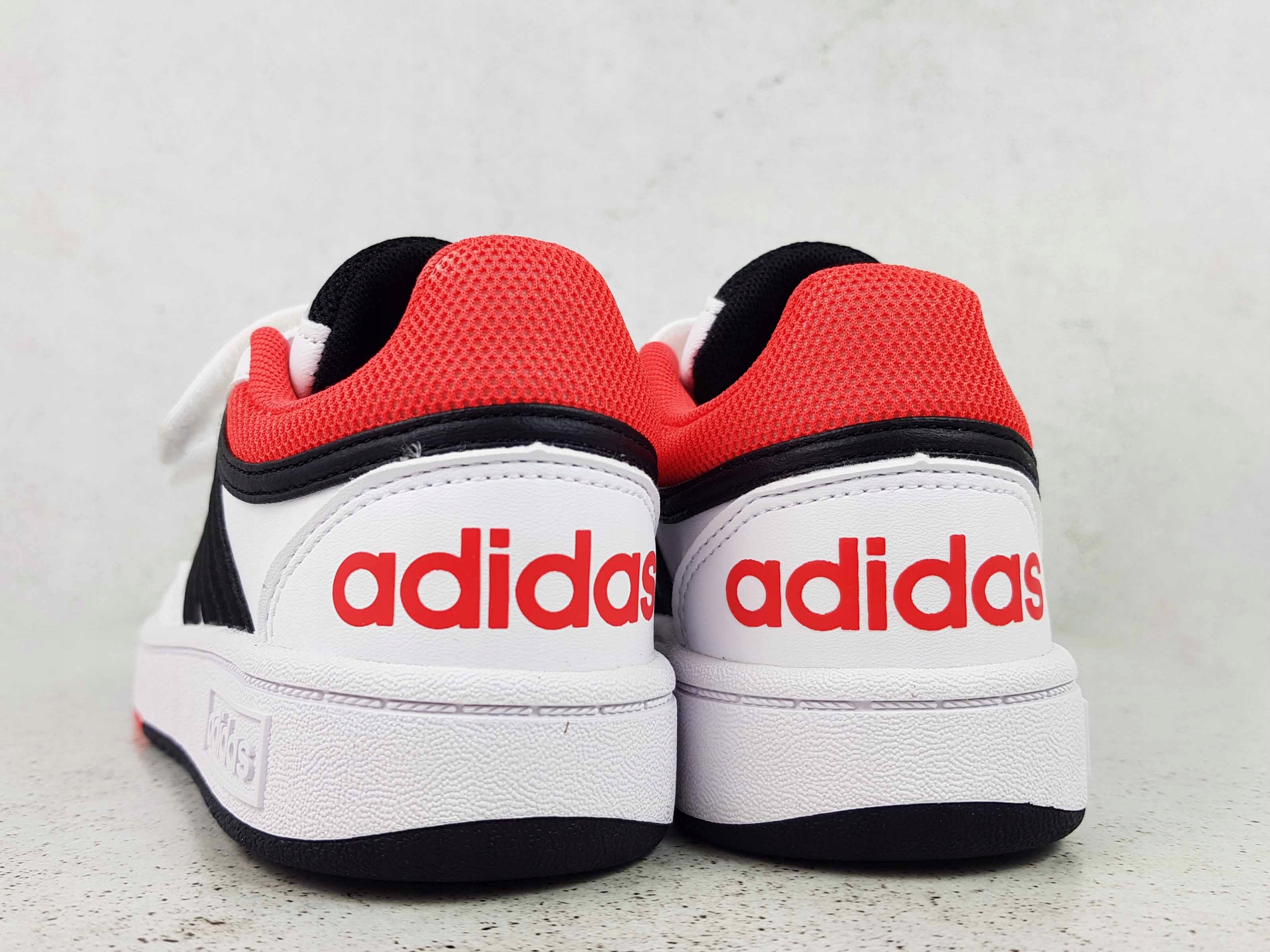 Классическая детская спортивная обувь из коллекции ADIDAS HOOPS. Застегивается на липучку для удобства надевания и снятия обуви.