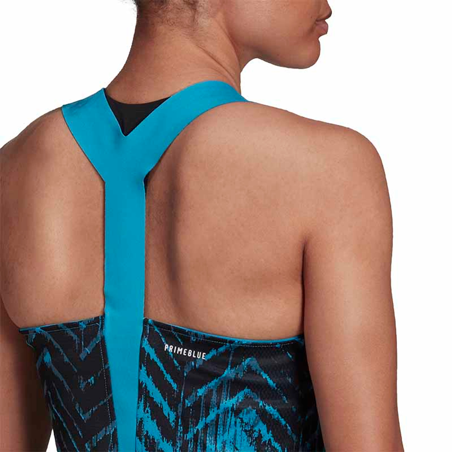 Значок возвращается в большом масштабе. Теннисное платье adidas имеет дизайн, имитирующий характерную подошву модели.