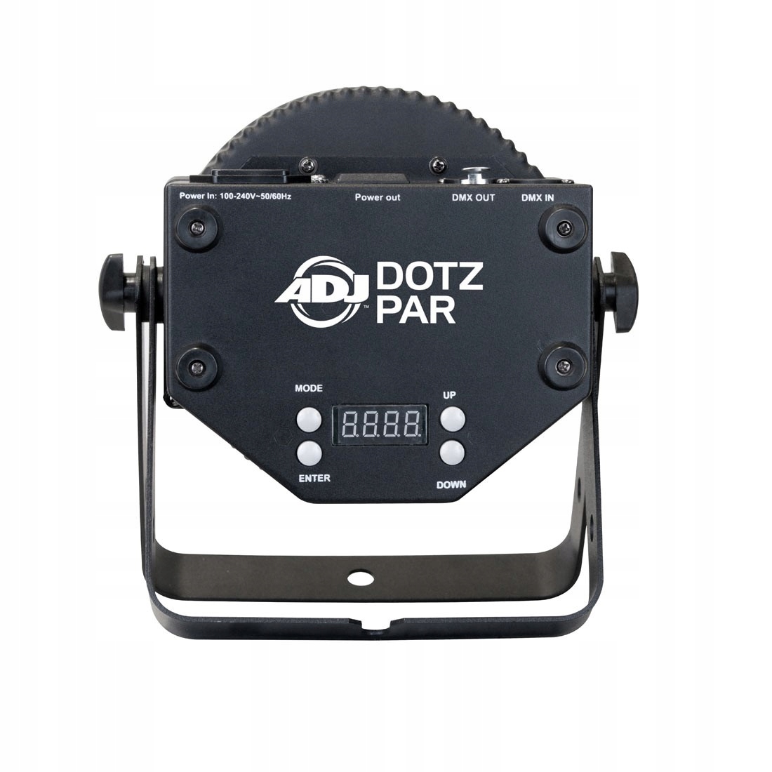 Adj Dotz Par - это пара фары, оснащенная новейшими светодиодными технологиями. В результате мы получаем очень яркие светящиеся, плавно смешивая парные цвета, не создавая красочные тени, типичные для светодиодных устройств. Он создан как для временного, так и для постоянного освещения сцены, паркета, стен и потолков.