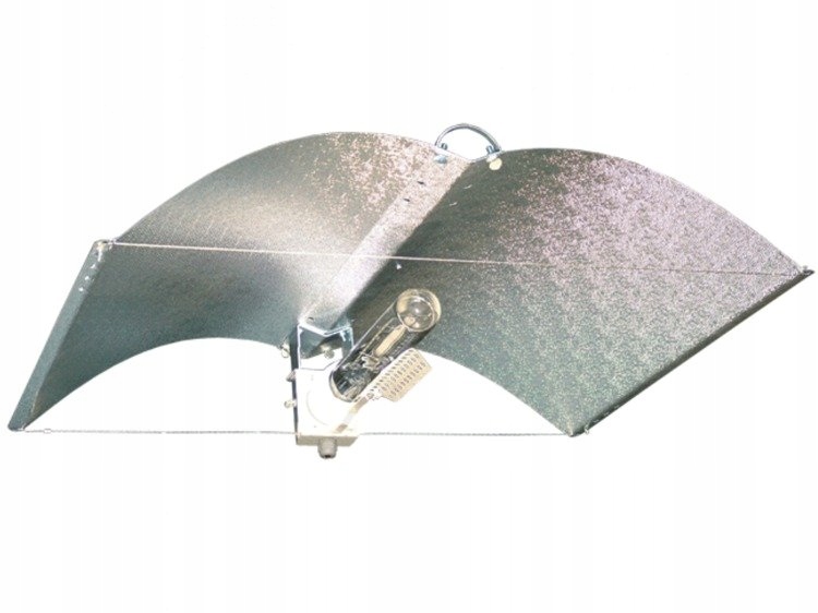 Размер большой, в разложенном виде: 115x70 см. Регулировка размаха крыльев позволяет имитировать времена года. Изготовлен из перфорированного зеркального алюминия MIRO9, обеспечивающего отражение 97%. Лампа мощностью до 1000 Вт. В комплект входит розетка Е-40 + расширитель.