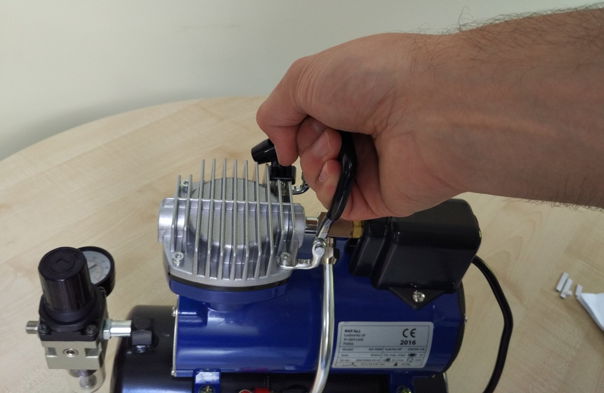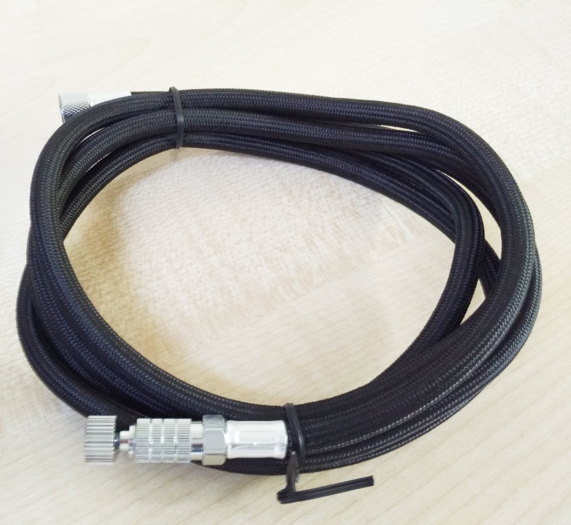 Дополнительно в комплект входит резиновый, гибкий кабель с текстильной оплеткой. Кабель оснащен быстроразъемным разъемом, позволяющим быстро и легко подключать и отключать аэрограф.