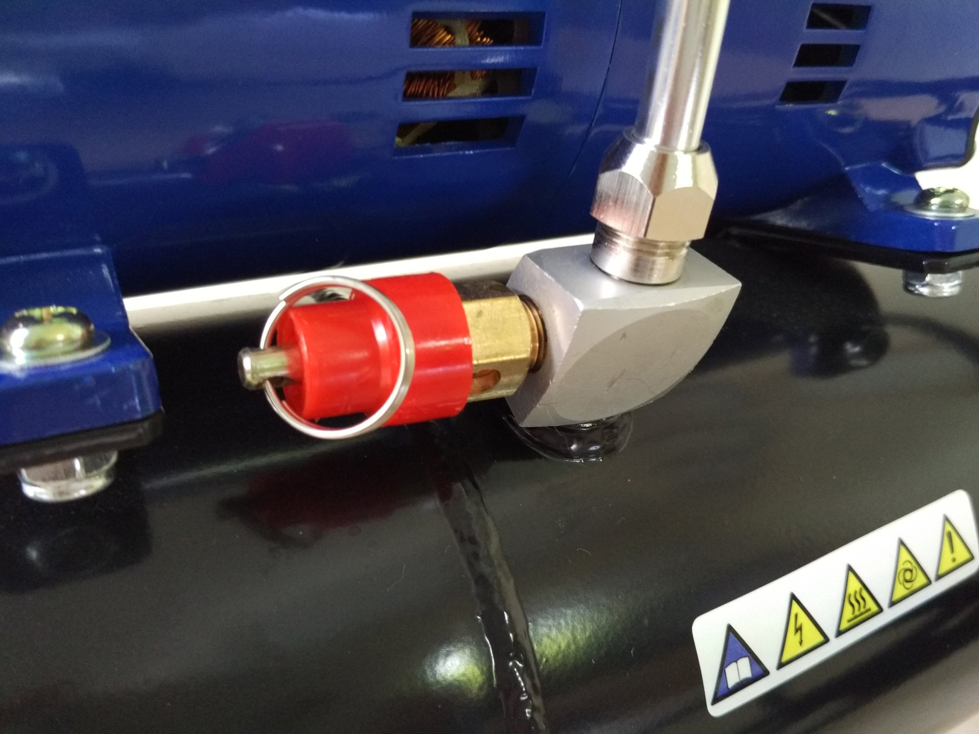 Компрессор оснащен предохранительным клапаном, а бак оснащен клапаном для слива конденсата.